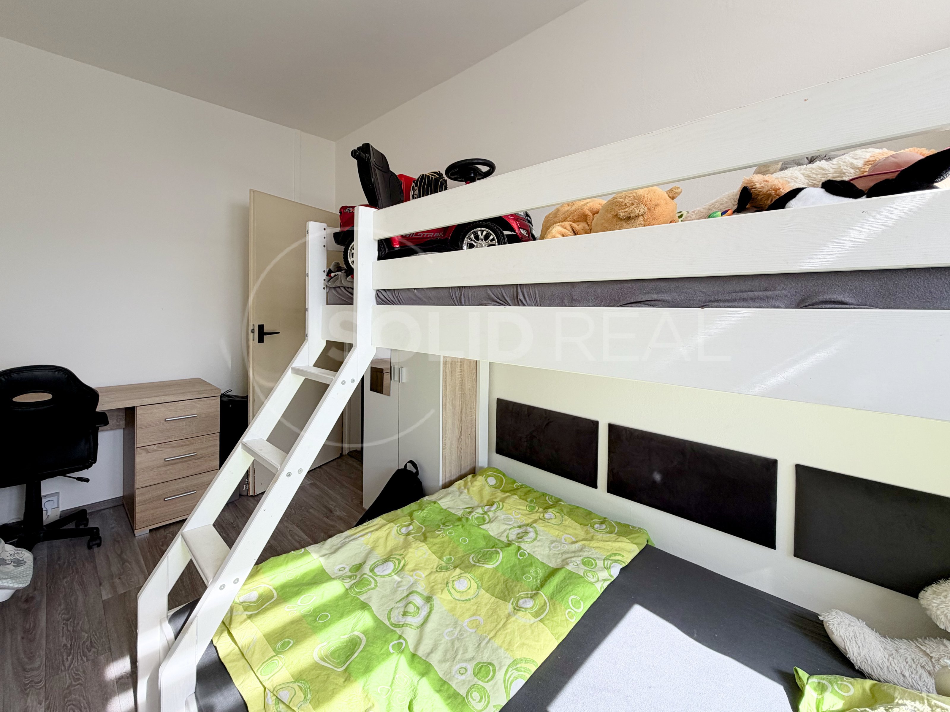 Rodinné bydlení s výhledem, který vás neomrzí Hledáte pro svou rodinu prostorný domov v klidné lokalitě, kde se nebudete muset dívat sousedům do oken? Nabízíme Vám výjimečný byt 4+1 v jedné z nejžádanějších částí Brna-Bohunic. Tento byt kombinuje velkorysou dispozici, skvělou orientaci a především unikátní výhled do zeleně, který v sídlištní zástavbě nemá obdoby. Hlavní přednosti bytu: • Unikátní výhled a soukromí: Okna z hlavní obytné části a kuchyně směřují na východ do rozlehlé školní zahrady a na sportoviště. Žádná další výstavba Vám tak nebere světlo ani soukromí. • Chytrá dispozice 4+1 (82 m²): Tři neprůchozí pokoje, prostorný obývací pokoj, samostatná kuchyně a praktická šatna nabízejí dostatek prostoru i pro větší rodinu nebo domácí pracovnu. • Interiér: V bytě byla před dvěma lety instalována moderní kuchyňská linka a položena nová podlaha. Interiér je čistý, světlý a vkusně udržovaný. • Atypický dům z roku 1992: Nejde o klasický starý panel, ale o jednu z nejnovějších konstrukcí se sendvičovými panely, což zajišťuje lepší tepelný komfort. Technické parametry a dům: • Plocha: 75,6 m² (byt) + lodžie 4,5 m² + sklepní kóje 1,9 m². • Podlaží: 5. z 8 (ideální výška pro klid i výhled). • Jádro: Udržované, vkusně obložené a vydlážděné - koupelna působí moderně. • Revitalizace na dosah: SVJ již schválilo projekt kompletní revitalizace (zateplení, nová okna, zasklení lodžií, venkovní rolety) s využitím dotací NZÚ. Kupujete tedy nemovitost, jejíž hodnota v nejbližší době výrazně vzroste. Uvolnění bytu: Aktuálně v bytě bydlí bezproblémová nájemnice. Pro nového majitele jsou otevřené obě cesty - převzetí bytu jako investice se stabilním výnosem a prověřeným nájemníkem, nebo uvolnění jednotky pro potřeby vlastního rodinného bydlení. Lokalita: Ulice Vedlejší patří k nejklidnějším částem Bohunic. V bezprostřední blízkosti najdete školy, školky, dětská hřiště i kompletní občanskou vybavenost (OC Campus, nemocnice). Skvělá dostupnost do centra Brna i na dálniční přivaděč je samozřejmostí. Přijďte se sami přesvědčit o výjimečné atmosféře tohoto bytu a výhledu, který si zamilujete.
